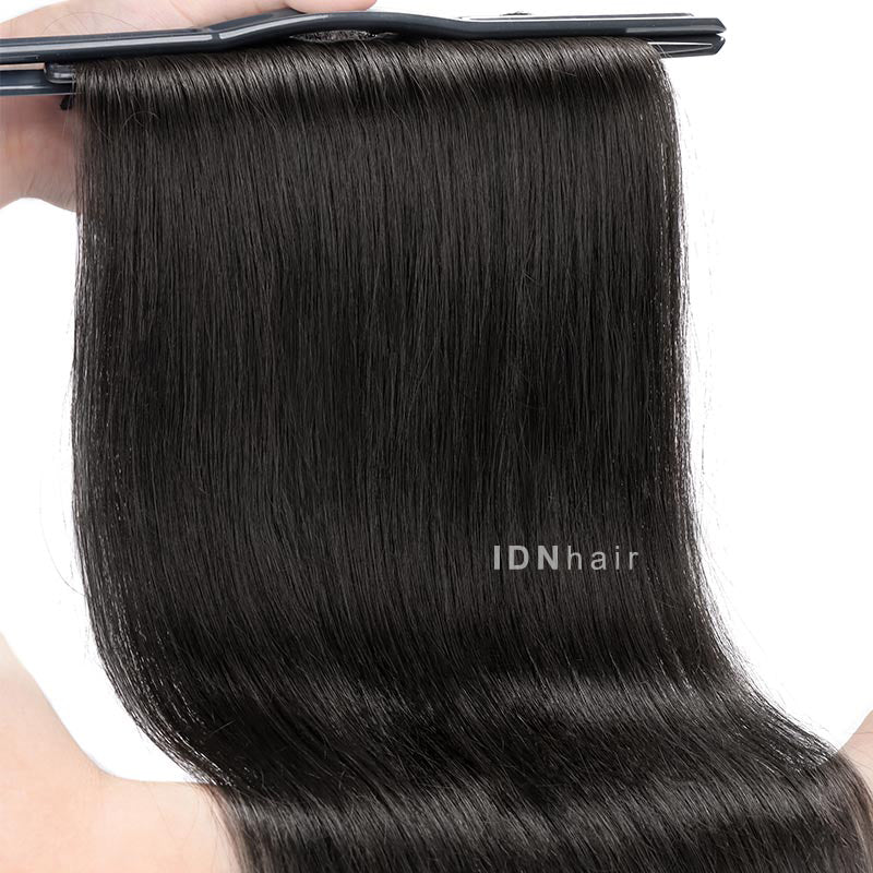 Give a break for your natural hair, Our Seamless Paper thin clip-ins hair is very lightweight and super flat, you even can sleep with them!! Big Game Changer!! Waves are always in fashion. Enhance the natural beauty of your own hair by adding length and volume wearing IDN hair Isabel seamless paper clip-ins, or create a ponytail and half up/ half down styles. The super thin PU design fits your scalp more invisibly, looks closer to the skin color. Easily install them at home by yourself.